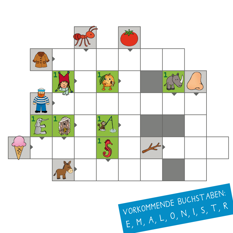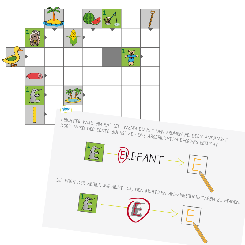 helfen die Rätselwörtchen bei der spielerischen Beschäftigung mit einfachen Wörtern.